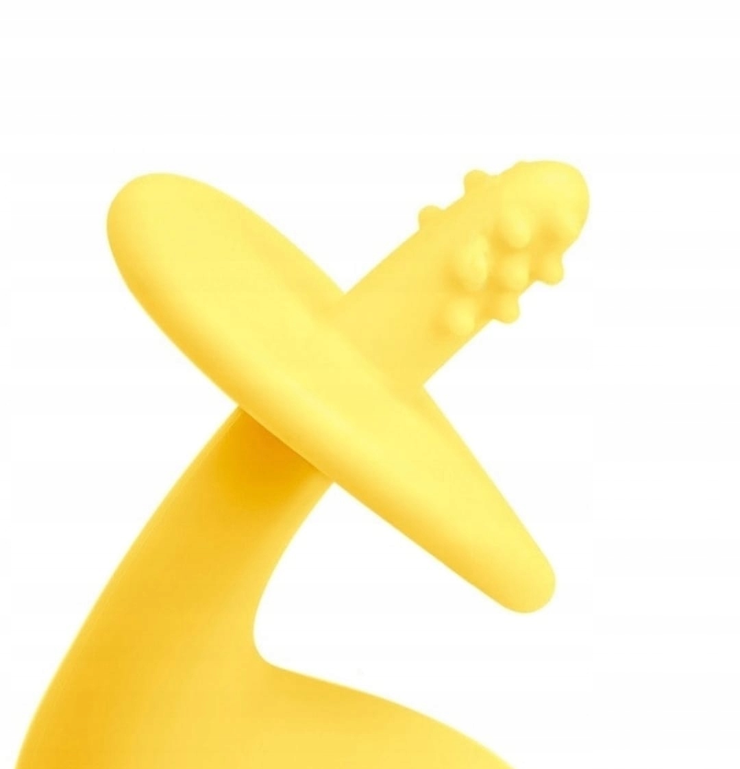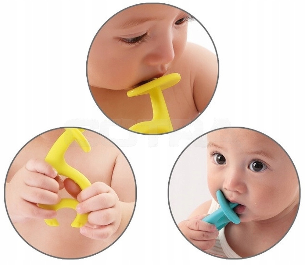 Gryzak dla niemowlaka został zakończony wypustkami masującymi delikatne dziąsełka, łagodząc ból podczas ząbkowania. Bezpieczny kształt i rozmiar został dopasowany do malutkich rączek umożliwiając dziecku swobodne chwytanie. Ciekawym rozwiązaniem jest połączenie gryzaka i szczoteczki do zębów bez możliwości zadławienia.