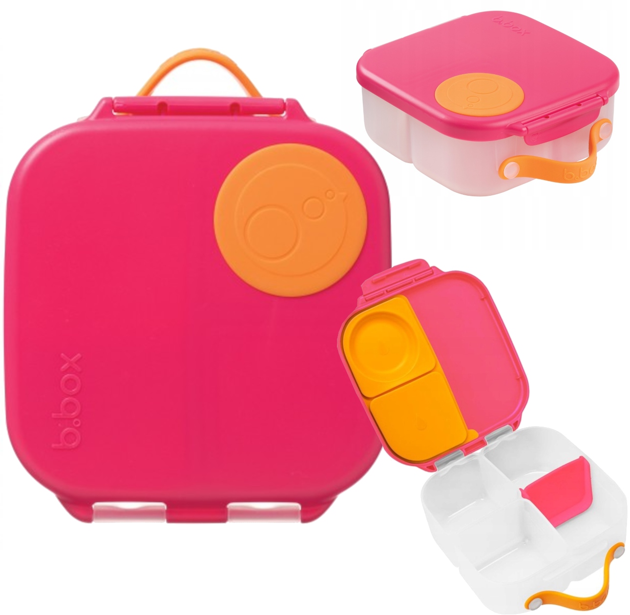 Mini lunchbox b.box dla dzieci ma dwie szczelne przegródki w tym jedną flex przeznaczoną na całe owoce. W przegrody te można włożyć także takie przekąski jak jogurt, humus, gęsty przecier, dip, soczyste owoce i warzywa. Obok znajduje się przegroda bez uszczelki z przesuwanym i wyjmowanym elementem dzielącym ułatwiającym dopasowanie do potrzeb. Lunchbox b.box ma kształt poręcznej walizeczki w wygodnym uchwytem i prostym w obsłudze zatrzaskiem.
