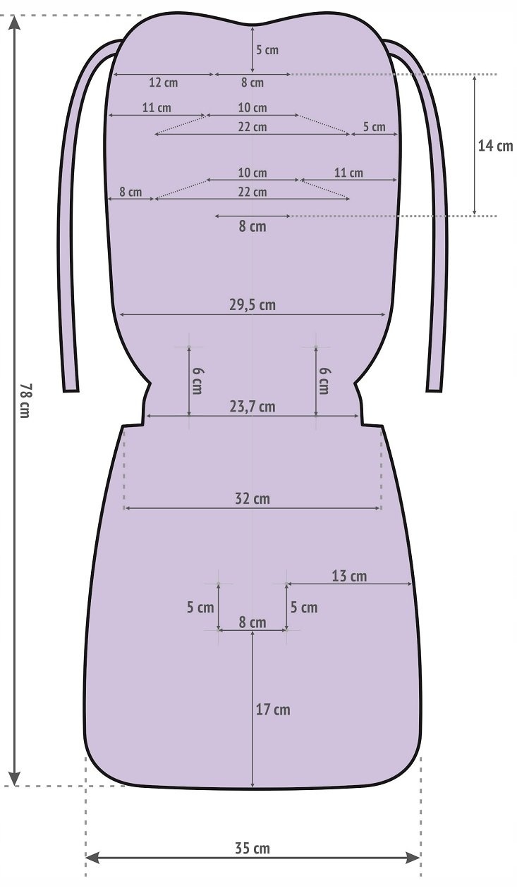 Wkładka wyposażona jest także w troczki do przymocowania na wózku, co zapobiega jej zsuwaniu się.