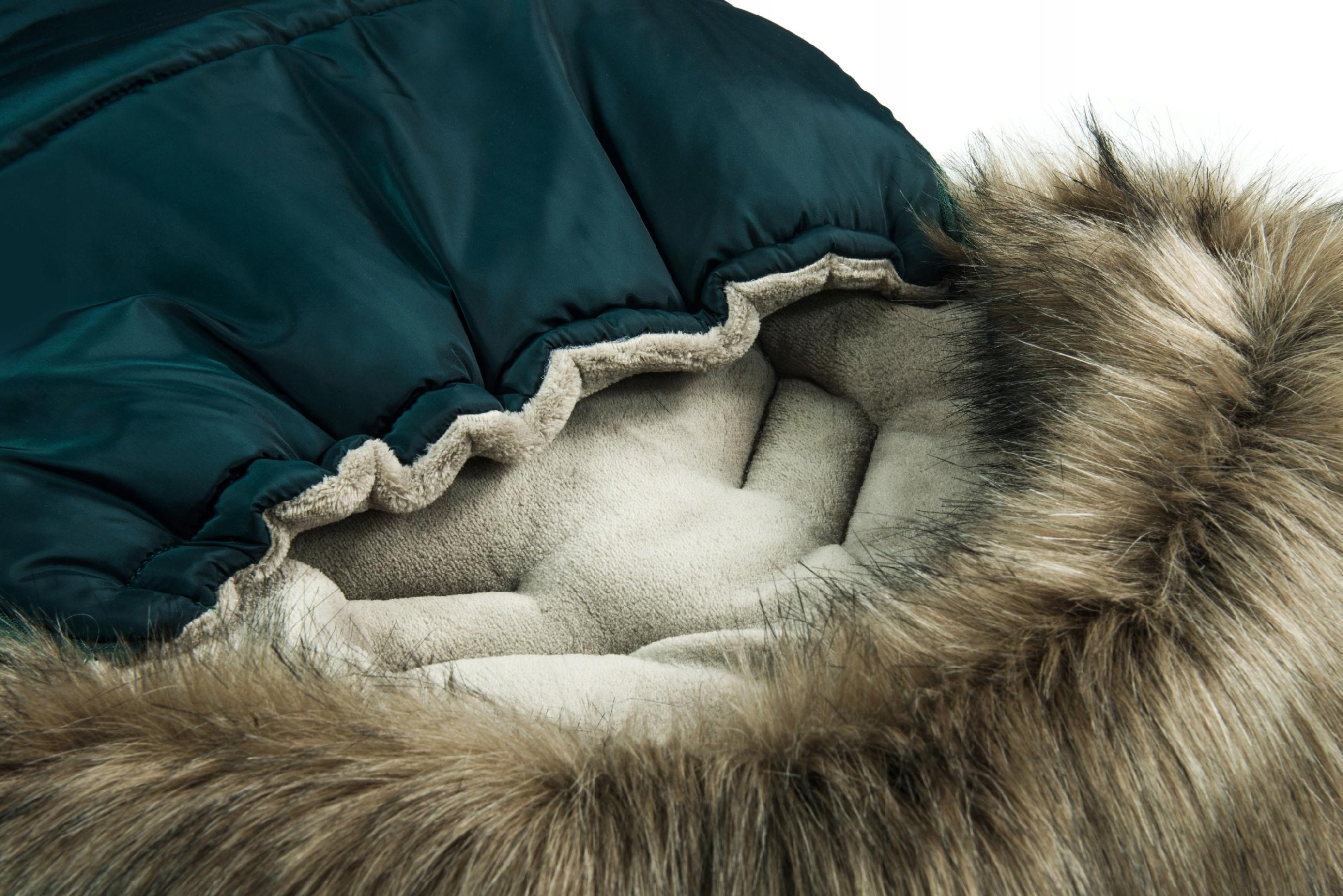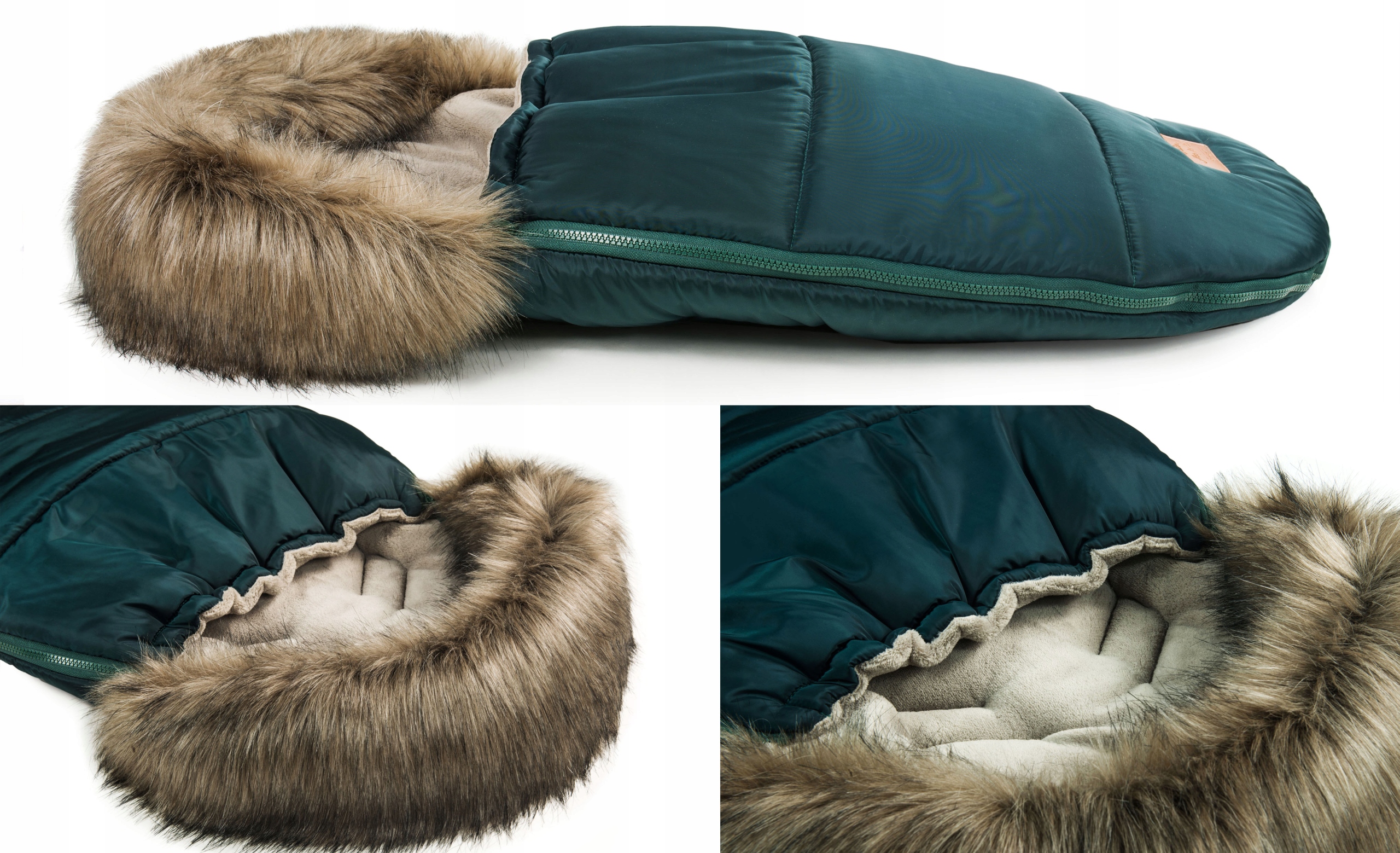 Śpiworek do wózka z podwójnym ociepleniem z dodatkiem futra sprawdzi się nawet w bardzo mroźne dni.