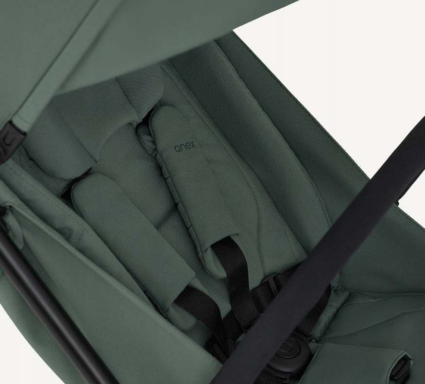 5-punktowe pasy bezpieczeństwa zapewniają właściwą pozycję podczas spaceru, a miękkie nakładki naramienne chronią delikatną skórę dziecka przed przypadkowym otarciem.